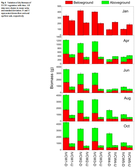 數據:C. indica aboveground生物量最高(峰值約3000 g m?2),A. donax在冬季生物量高。