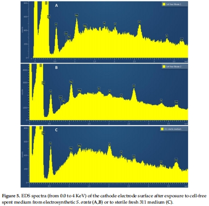 數據:EDS顯示上清液暴露的陰極表面有鈷(X射線計數50-120)和鎳(60-140),無菌介質中未檢測到。