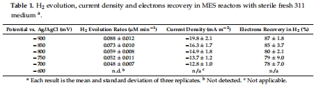 數據:在無菌新鮮培養基中,H2在-700 mV起始演化,-900 mV時速率達0.58±0.03 μM/min,電流密度為-0.31±0.02 A/m2,電子回收率91.2±4.1%。
