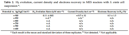 數據:S. ovata細胞懸浮液中,-900 mV時H2演化速率僅0.11±0.02 μM/min,電子回收率8.5±1.5%,但乙酸產量6.6±0.2 μM,庫倫效率75±3%。
