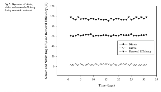 2 氮去除數據:來自圖2(好氧)和圖5(厭氧),顯示好氧條件下硝酸鹽去除率為83-90%,厭氧條件下為96-98%。研究意義是揭示好氧條件下DNRA路徑主導,厭氧條件下反硝化路徑主導,幫助理解氮轉化機制。