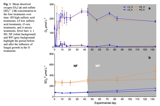 研究目的是實驗檢驗硫酸鹽和氧氣對有機土壤中鐵遷移的影響,具體包括驗證兩個假設:一是無氧條件會促進鐵釋放;二是高硫酸鹽可用性會通過形成FeS、競爭電子受體或高酸度減少DOC可用性來抑制鐵遷移。同時,評估鐵在氧化條件下的穩定性,并意外利用真菌生長事件分析其對鐵遷移的作用。