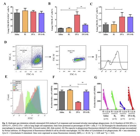 氫氣體吸入在卵清蛋白誘導的哮喘模型中增強肺泡巨噬細胞吞噬作用