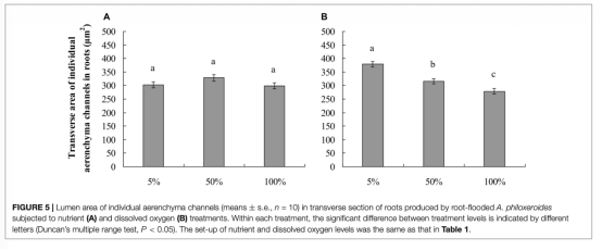 5. 根孔隙度和通氣組織通道大?。簛碜詧D4和圖5。研究意義:孔隙度無變化,但溶解氧缺乏時通氣組織通道擴大,增強氣體傳導和氧供應,直接支持根在低氧環境下的營養吸收能力,突出通氣組織形態在脅迫響應中的重要性。
