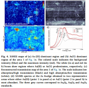 數據:As(III) 和 As(V) 的分離圖譜,以及在一個有機質球狀體(Figure 6)中高砷但缺乏其他金屬的信號。