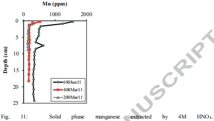 錳含量分析:使用4M HNO3浸提法測定沉積物中可提取錳的含量(圖11)。