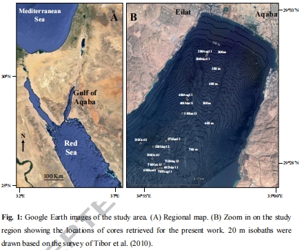 研究聚焦于紅海亞喀巴灣(Gulf of Aqaba)這一獨特海域,其底層水對碳酸鹽礦物(文石、方解石)始終處于高度過飽和狀態(tài)。研究旨在解決一個核心爭議:在底層水高度過飽和的背景下,沉積物頂部是否仍然會發(fā)生碳酸鈣(CaCO?)的凈溶解?通過綜合運用微電極、孔隙水化學(xué)、培養(yǎng)實驗和固體相分析,研究揭示了沉積物-水界面處復(fù)雜的碳酸鹽動態(tài),并提出了一個由錳(Mn)循環(huán)驅(qū)動的全新機制來解釋表觀矛盾。