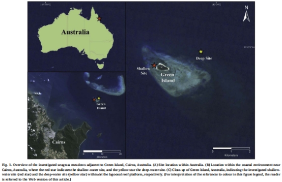 研究聚焦于澳大利亞大堡礁格林島(Green Island)的不同水深(淺水約2米,深水約17米)海草床,通過(guò)人工遮蔭實(shí)驗(yàn),探究了短期光照減少對(duì)海草地上部生物量以及沉積物生物地球化學(xué)過(guò)程的差異影響。