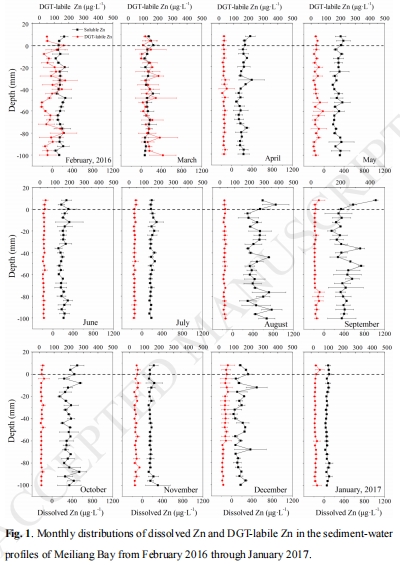 揭示鋅遷移性的時空動態:利用HR-Peeper和DGT技術,定量刻畫溶解態Zn和DGT有效態Zn在沉積物-水剖面中的月度垂直分布和季節變化規律。