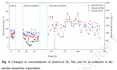 好氧-厭氧實驗Zn、Mn、Fe釋放動力學(來自 圖4)