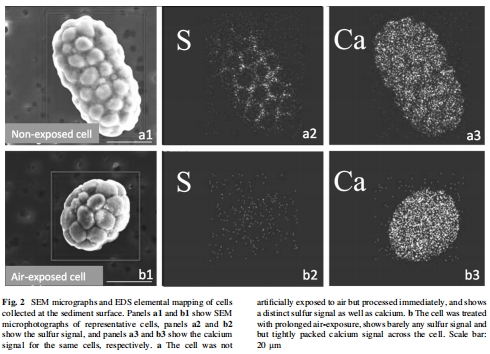 揭示方解石和硫的細胞內動態:重點關注氧氣暴露作為生理控制因子如何影響Achromatium細胞內的方解石和硫的形態與分布。