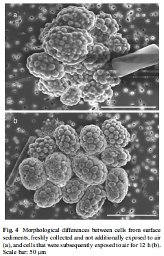分組包括表層(0-4 mm)和深層(12-28 mm)沉積物來源的細胞。