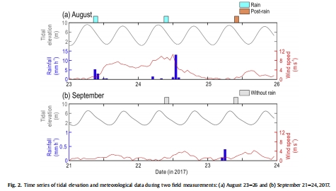 沉積物可蝕性:降雨條件下,沉積物可蝕性顯著增加,總侵蝕質(zhì)量比無(wú)雨條件高37-86%,表明降雨擾動(dòng)了表層沉積物。雨后,高可蝕性沉積物被移除,侵蝕質(zhì)量減少。