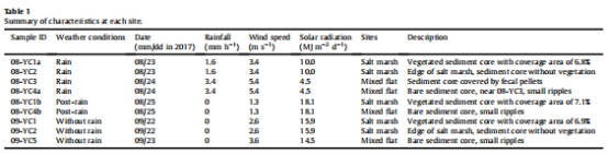 摘要結(jié)論強(qiáng)調(diào),降雨對(duì)沉積物和MPB的侵蝕有顯著影響,但效應(yīng)因生態(tài)系統(tǒng)類(lèi)型而異,植被冠層在鹽沼區(qū)起到緩沖作用。