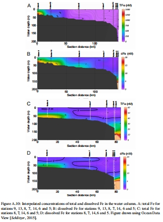 數據:溶解和總Fe濃度垂直剖面。
