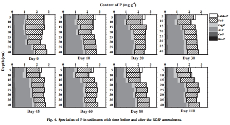 批量吸附實驗:在10天振蕩中,NCSP對沉積物可溶性活性磷(SRP)的固定效率平均達95%,且活性磷形態(Fe-P和Al-P)轉化為穩定Ca-P(Fig. 1)。