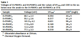 部分反應(yīng)器(D-PSMFC3、M-PSMFC3)因根系腐爛導(dǎo)致電壓驟升(最高200 mV),COD和UV254值翻倍。