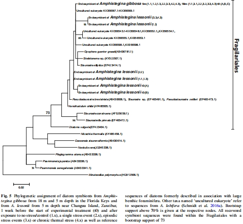 遺傳分析:18S rDNA測序鑒定共生體硅藻類型。