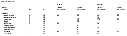 食物沉降會(huì)導(dǎo)致其附近區(qū)域的小型底棲動(dòng)物/線蟲(chóng)密度增加。