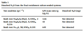 數據關聯:在硫代硫酸鹽系統中,測量顯示溶解N?O濃度可忽略(Table 1),且未檢測到氣體排放。