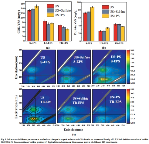 數據:EEM光譜顯示US+PS預處理下,S-EPS中蛋白質樣物質(如色氨酸)增加,TB-EPS減少;發酵過程中蛋白質從TB-EPS向S-EPS轉移。