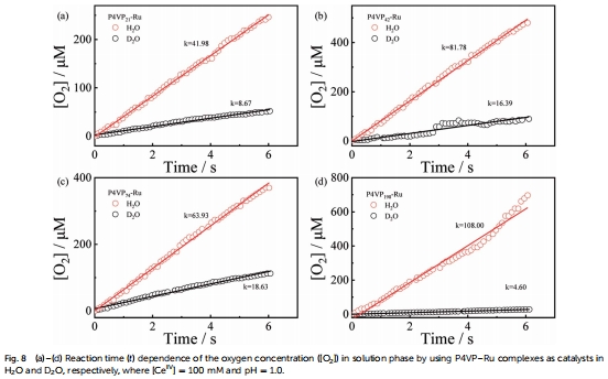 數據:在D?O中氧氣演化速率顯著降低,KIEH/D值~3.43-4.99(P4VP21-74-Ru),遠大于1,表明O-H鍵斷裂參與決速步。