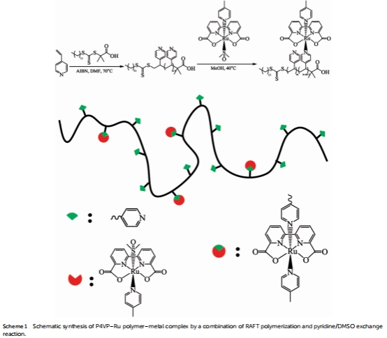 催化劑合成:通過RAFT聚合制備不同鏈長P4VP(DP 21-198),再與[Ru(bda)(pic)(DMSO)]前驅體進行配體交換,得到P4VP-Ru PMCs。