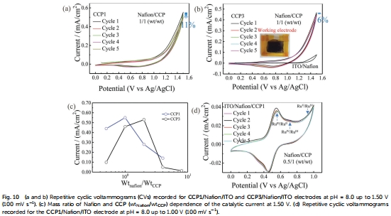 電化學(xué)應(yīng)用前景良好:CCP/Nafion/ITO電極表現(xiàn)出色,穩(wěn)定性高,適合實(shí)際水氧化系統(tǒng)。