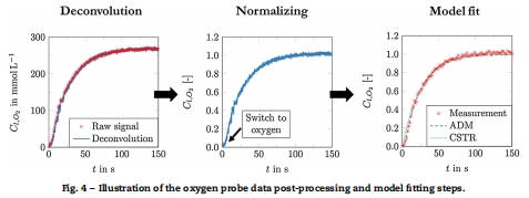 實驗應用:在氮氣吹掃后切換至空氣,記錄氧濃度隨時間變化曲線(如Fig. 8),通過去卷積處理消除傳感器延遲,提取瞬時kLa值。