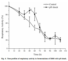 數據:CTC染色顯示pH沖擊組呼吸活性更高(36-48 h)。