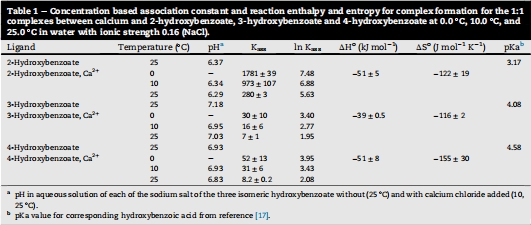 研究意義:2-異構(gòu)體結(jié)合最強(qiáng)歸因于螯合效應(yīng)(酚羥基與羧酸鹽協(xié)同),如Fig. 1所示;溫度升高降低K_ass,表明結(jié)合為放熱過(guò)程。這解釋了鈣對(duì)抗氧化活性的差異化影響。