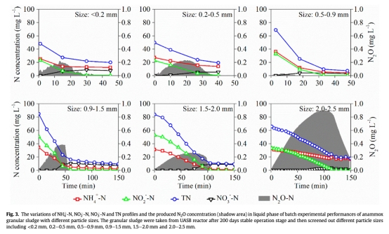 1 厭氧氨氧化顆粒污泥在0.5-0.9毫米尺寸下表現出最佳氮去除性能和最低氧化亞氮排放,是低氨氮污水處理的理想選擇。