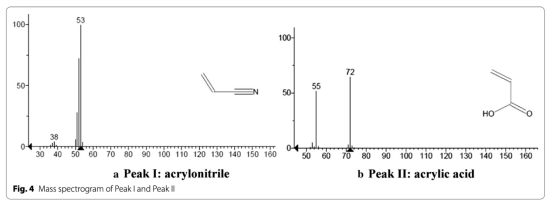 1 數(shù)據(jù):丙烯腈降解中間產(chǎn)物鑒定(丙烯酸),來自Fig.3和Fig.4。研究意義:GC-MS分析確認丙烯酸為主要中間產(chǎn)物,表明降解途徑為水解反應,驗證菌株通過斷裂-CN鍵實現(xiàn)脫氰解毒。