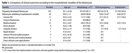 1. 形態(tài)動力學(xué)變量對單囊胚移植的植入率和臨床妊娠率有顯著負(fù)面影響,即使胚胎能發(fā)育到囊胚階段。