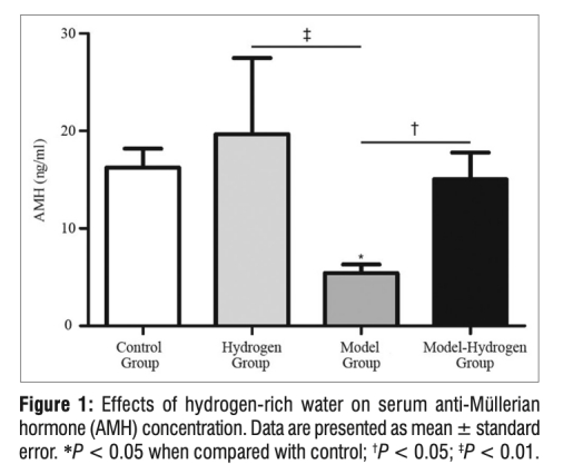 摘要部分闡述了研究背景:卵巢早衰(POF)是一種影響女性生育力的疾病,但有效治療方法少。卵巢儲備功能在女性生育力中起重要作用。近期研究報道氫能保護男性生育力,因此本研究通過小鼠免疫性POF模型探索富氫水對卵巢儲備功能的潛在保護作用。方法:50只雌性BALB/c小鼠隨機分為四組:對照組(飲用正常水)、氫組(飲用富氫水)、模型組(用ZP3免疫并飲用正常水)和模型-氫組(用ZP3免疫并飲用富氫水)。5周后處死小鼠,檢測血清抗苗勒管激素(AMH)水平、顆粒細胞(GC)凋亡指數(shù)(AI)、Bcl-2和Bax表達。結(jié)果:模型組血清AMH水平顯著低于對照組和氫組,模型-氫組AMH水平顯著高于模型組。模型組GC AI顯著高于其他組,模型-氫組GC AI顯著低于模型組但高于氫組。模型-氫組卵巢組織Bcl-2水平升高,Bax/Bcl-2比率降低。結(jié)論:富氫水可能改善ZP3誘導(dǎo)的小鼠免疫性POF模型中的血清AMH水平并減少卵巢GC凋亡。
