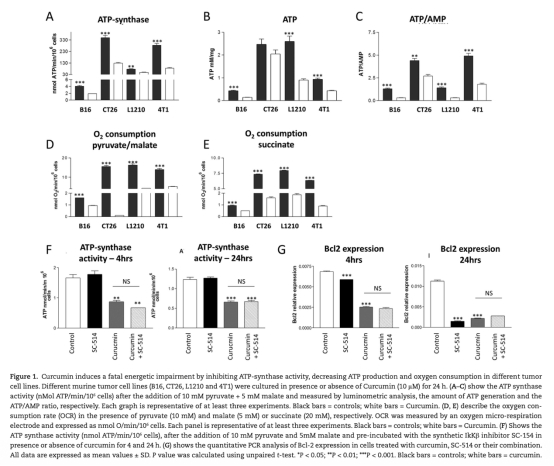 研究目的是探討姜黃素對腫瘤細胞能量代謝的影響,特別是是否通過抑制ATP合酶活性導致能量損傷,從而抑制腫瘤生長,并區(qū)分其是否獨立于已知的NFkB抑制途徑。