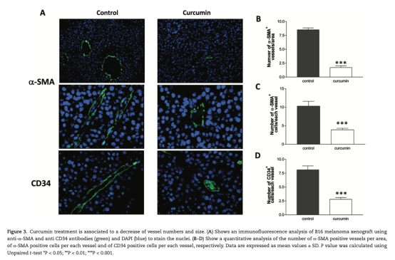 7 來自圖3:血管數(shù)量減少和尺寸減小。研究意義是顯示姜黃素抗血管生成效應。