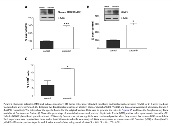 結論是姜黃素通過抑制ATP合酶活性導致腫瘤細胞能量損傷,獨立于NFkB抑制,引發(fā)氧化應激、凋亡和自噬。在體內,姜黃素延遲腫瘤生長,部分由于能量損傷和抗血管生成效應。姜黃素可作為熱量限制模擬物,通過代謝干預抑制腫瘤。