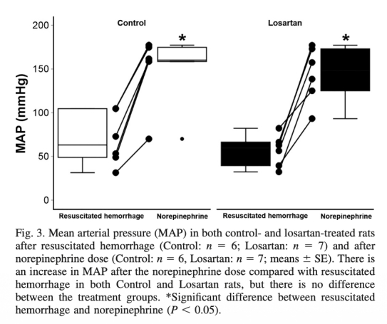 論文得出結論,氯沙坦不降低復蘇后出血后大鼠的腎氧合(皮質和髓質),且不削弱去甲腎上腺素的升壓效率。這表明腎素-血管緊張素系統阻滯劑可能無需在手術前停用,血壓管理在氯沙坦治療下仍有效。