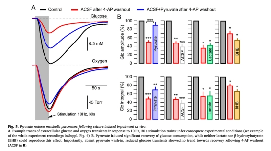 7 數(shù)據:丙酮酸應用恢復葡萄糖利用,正常化代謝參數(shù)。研究意義:表明丙酮酸能逆轉癲癇誘導的代謝損傷,提供治療潛力。來源:圖5。