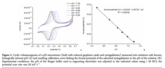 這篇論文的摘要指出,目前缺乏高空間分辨率測量貼壁生長哺乳動(dòng)物細(xì)胞細(xì)胞外pH(pHe)的工具,細(xì)胞生物學(xué)家通常局限于使用商業(yè)熒光探針測量細(xì)胞內(nèi)pH。因此,作者開發(fā)了一種伏安法pH微傳感器,由修飾了還原氧化石墨烯和syringaldazine的碳纖維微電極組成,用于監(jiān)測細(xì)胞外pH。該傳感器具有良好的靈敏度(60±2.5 mV/pH單位)、重現(xiàn)性(系數(shù)變異≤3%)和穩(wěn)定性(3小時(shí)內(nèi)pH漂移約0.05單位),并成功用于研究癌癥細(xì)胞和正常細(xì)胞細(xì)胞外空間的酸化,揭示了細(xì)胞pH調(diào)節(jié)的細(xì)節(jié),這些細(xì)節(jié)無法用缺乏空間分辨率或無法精確定位的pH傳感器獲得。