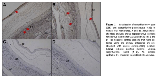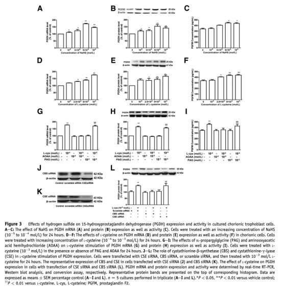 氫硫化物生成酶表達(dá)下調(diào)在足月和早產(chǎn)分娩中下調(diào)絨毛膜15-羥基前列腺素脫氫酶的表達(dá)