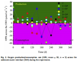 計算關鍵過程速率:基于測量得到的氧氣濃度剖面,研究人員可以應用擴散-反應模型,計算出沉積物-水界面的氧產生/消耗速率。該速率反映了界面附近凈的生物和化學活動強度(如光合作用、呼吸作用、化學氧化)。如圖2所示,疏浚沉積物(D處理)的氧消耗速率很低,而添加了非無菌懸浮顆粒物的疏浚沉積物(D+FP處理)在夏季顯示出較高的氧消耗,這暗示了懸浮顆粒物引入的有機質被微生物降解消耗氧氣。這些數據將界面環境的靜態描述(氧濃度)與動態過程(消耗速率)聯系起來,深化了對界面行為的理解。