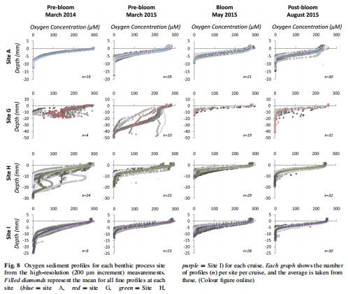 量化變異性:系統調查大陸架沉積物中氧氣動力學的空間變異性(不同沉積物類型:從粘性到滲透性)和時間變異性(季節性,特別是與春季浮游植物水華相關的變化)。