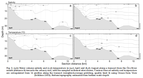 環(huán)境背景監(jiān)測:同步測量了水體鹽度、溫度分層結(jié)構(gòu)(圖3)、河流流量和硝酸鹽濃度(圖2),以及水體不同層次顆粒有機物的濃度和碳氮同位素組成(圖6),為反硝化速率提供環(huán)境背景。