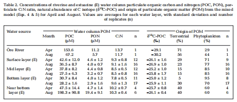 研究意義:圖6和 圖7以及 Table 2的數(shù)據(jù)表明,河口顆粒物主要來源于浮游植物(>70%),并且其δ13C值更接近海洋浮游植物信號而非陸源植物。這提供了關鍵證據(jù),支持了“河流硝酸鹽首先被河口的浮游植物吸收,轉(zhuǎn)化為顆粒有機氮,然后沉降到沉積物表面”這一假設。這些沉降的藻類顆粒為沉積物微生物提供了活性有機碳和氮源,從而驅(qū)動了耦合的硝化-反硝化過程。近底層水在8月出現(xiàn)POC和PON富集,可能暗示了再懸浮事件,將更多的有機質(zhì)輸送到沉積物。