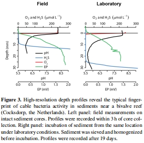 研究意義:電位梯度是電纜細菌長距離電子傳輸的直接結果。該數據提供了e-SOx的物理證據,并允許估算電子傳輸速率,將生物學活動與地球化學通量聯系起來。
