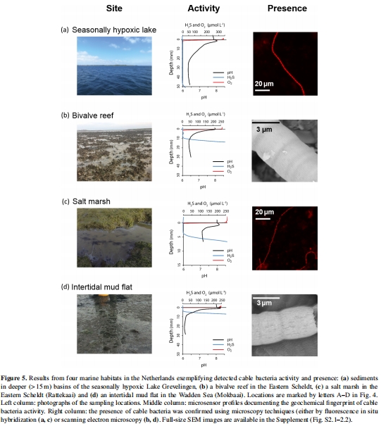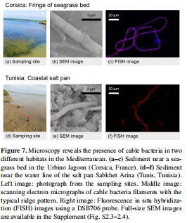 數據來源:Figure 5(荷蘭多種棲息地的顯微鏡圖像),Figure 7(地中海站點電纜細菌的SEM和FISH圖)。