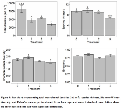 數據來源:圖1, 圖2,以及正文中關于群落分析的結果(如指出Aphelochaeta marioni 和 Oligochaeta spp. 是導致處理間差異的主要貢獻者)。