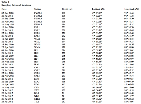 實地采樣與測量:在蘇必利爾湖多個站點(圖2和 表1)采集沉積物柱狀樣。使用孔隙水采樣器(Rhizon)以高垂直分辨率獲取不同深度的孔隙水樣品。